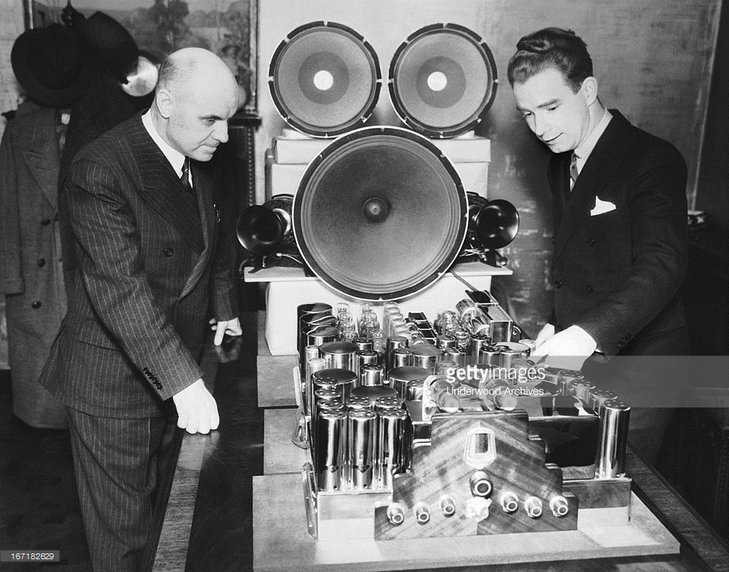 ![]() If the buyer of this system wishes to have this system function properly, he/she would have to provide the appropriate power supply to separately feed the heaters of the tuner and crossover tubes. The package also includes 7 speakers. Please click here to see a photo of 5 of them (2 Jensen horn tweeters, 2 Magnavox 12" mid-range, 1 Jensen 18" woofer) (brands such as Magnavox and Jensen were two major suppliers of speakers for E.H. Scott radios) and quite similar to the Quaranta's and are all in excellent condition: