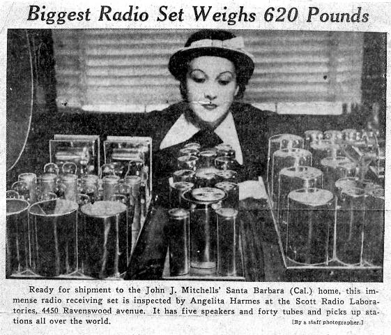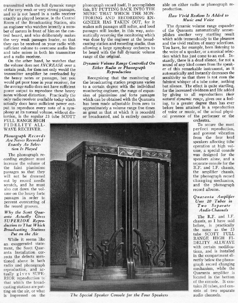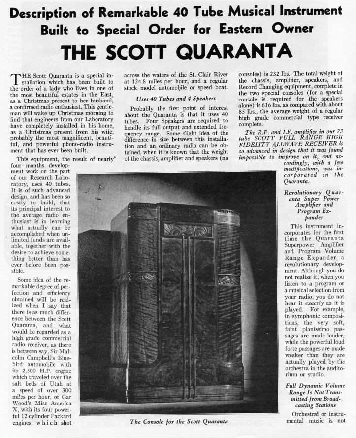 radio ensemble ever designed and built. It was manufactured by Scott Radio Laboratories in the 1930's with
