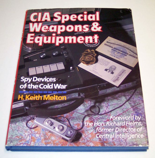 "CIA Special Weapons & Equipment" - 1993. | Ecrit par Keith Melton en 1993, ce livre de 128 pages fut publié par Sterling Publishing et contient nombreuse illustrations. Il y a un avant-propos par Richard Helms. Ce livre couvre divers aspects de la Guerre Froide notamment les communications clandestines, le contre-espionnage, appareils-photo et dissimulation. |