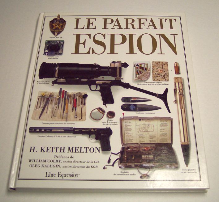 "Le Parfait Espion" - 1997. | Avec Keith Melton comme auteur, "Le Parfait Espion" fut publié en 1997 par Libre Expression et inclut nombreuses photos parmi ses 174 pages. On y retrouve des préfaces par William E. Colby et Oleg Kalugin. Ce livre couvre les armes, le contre-espionnage, transmissions secrètes, matériel et technique, guerre froide et missions célèbres. |