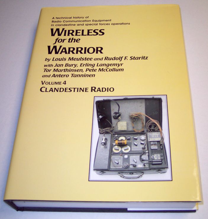 "Wireless for the Warrior - Volume 4 - Clandestine Radio" - 1991. | Ayant Louis Meulstee comme auteur en 2004, ce livre assez détaillé couvre une grande quantité de radios clandestins et est publié par Wimborne Publishing et est très garnit d'info technique et historique. Les catégories principales couvertes sont i) radios émetteurs et récepteurs, ii) matériel RDF et ensembles d'interception, iii) génératrices, iv) manipulateurs à haute vitesse, et v) materiel spécial. Il y a un avant-propos de Geoff Arnold. Le livre décrit plusieurs radios de divers pays avec les plus notables étant la Grande-Bretagne, les Etats-Unis, la Pologne, l'Allemagne et la Russie parmi tant d'autres. Malheureusement, les pages ne sont pas numérotées. |